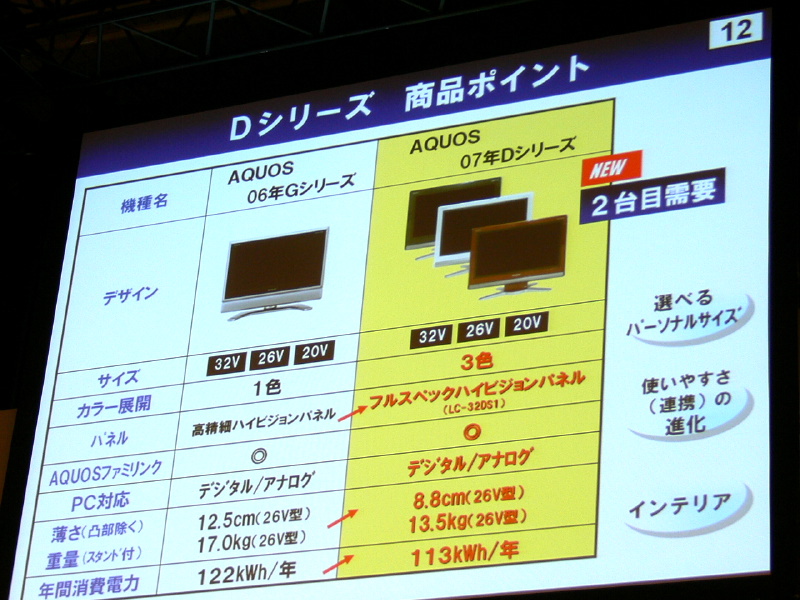 シャープ、3色展開の32/26/20V型液晶テレビ“AQUOS Dシリーズ”