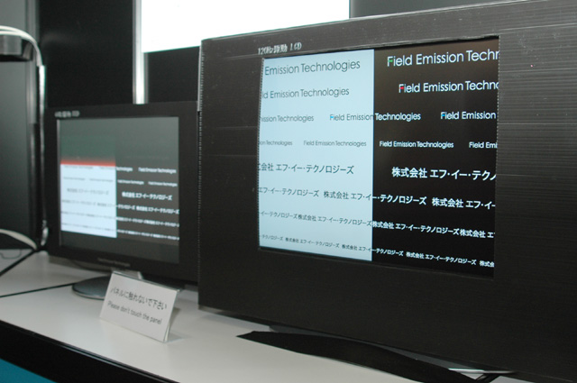 FED(奥)とLCD(手前)の動画応答性能も比較展示でデモを行う
