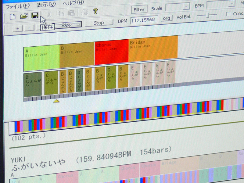 上段の曲を先に決めておき、下段にミックスしたい曲をリコメンドする