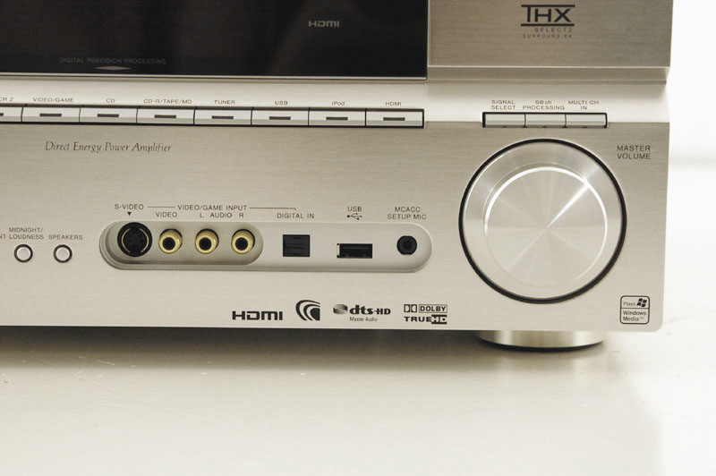 VSA-AX1AHのフロントパネルには次世代フォーマットのロゴが並ぶ