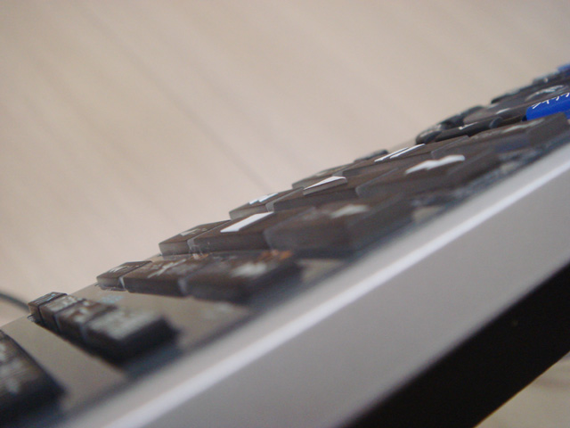 中央部「一時停止・再生・停止」など十字方向のボタンが高くなっているのがわかる。