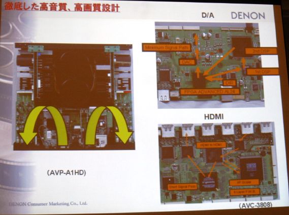 信号経路は極力短くし、音質向上を目指している(図はAVP-A1HDの経路図)