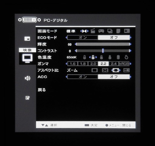 細かい画質設定をOSDより行える