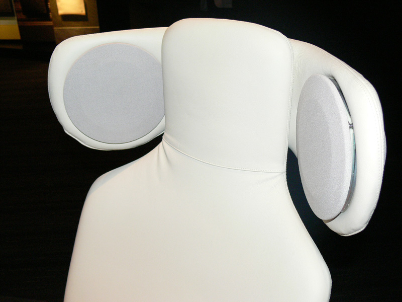 ヘッドレスト部分にスピーカーを配置。ヘッドレストの位置は調整可能だ