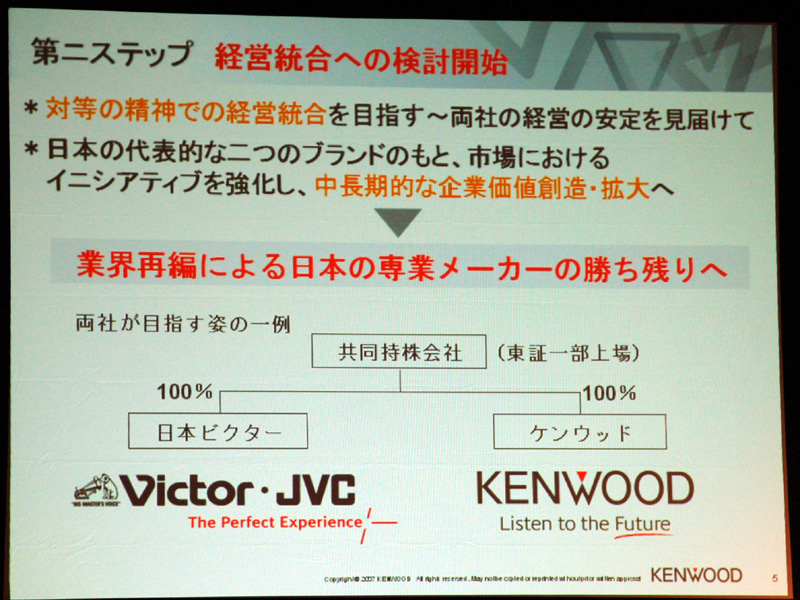 「対等の精神で経営統合を」 − ビクター、ケンウッド、松下らトップが会見