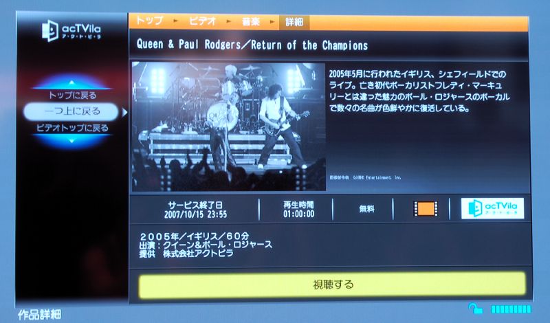 コンテンツを選択すると、内容説明が表示される