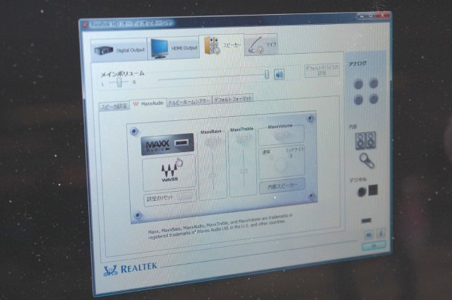 MaxxAudioの設定が行えるアプリケーション「Realtek HDオーディオマネージャ」を搭載