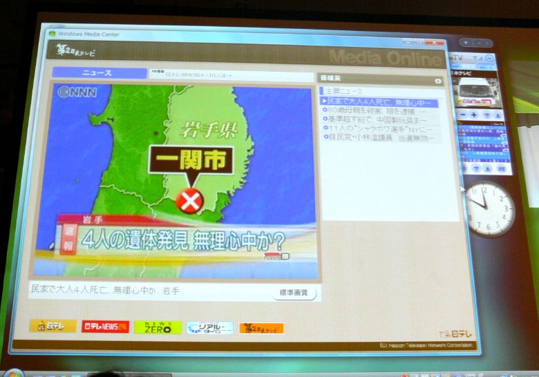 右側のサイドバーに登録した“ちょいテレ”ガジェットからメディアオンラインの関連動画を再生したところ