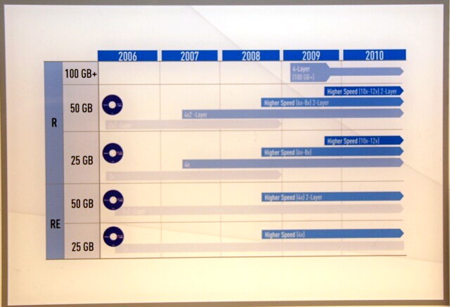 4層100GBのBD-Rディスクも2009年の商品化を目標に開発中(一覧最上段)