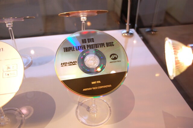 メモリーテック社が出展した3層HD DVDディスクのプロトタイプ