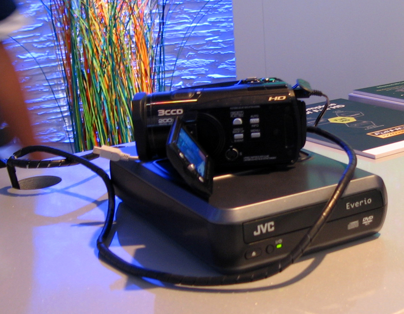 Everioの GZ-HD3は専用DVD ライターとともにデモ