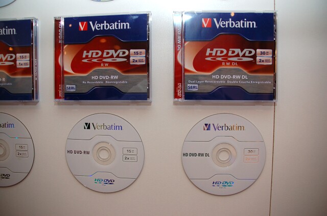 バーベイタムのブースではHD DVD-RWディスクも展示されている