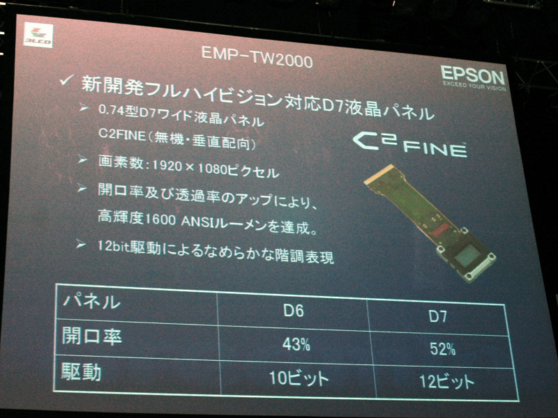 先日発表されたD7パネルを採用。開口率が高まり、輝度アップにつながった