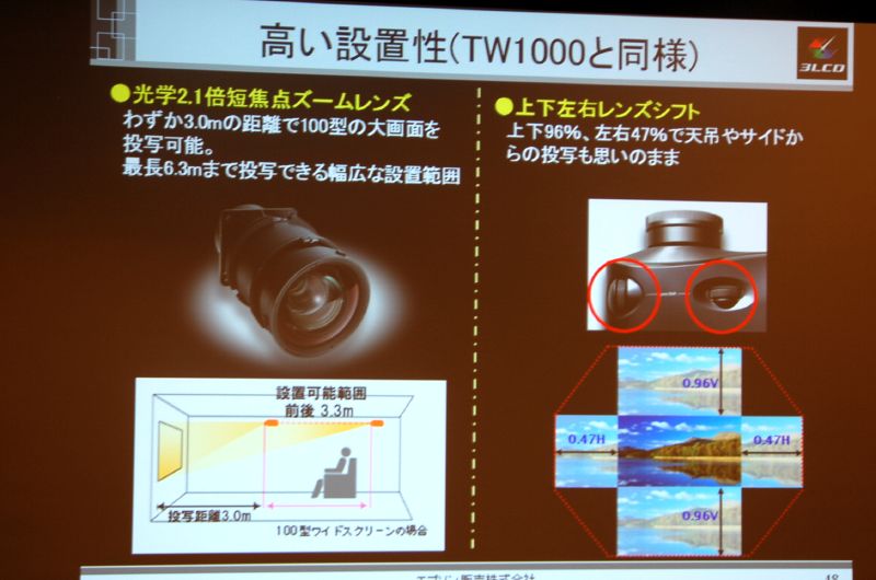 搭載するレンズやレンズシフト性能はTW1000と同じ