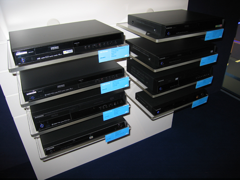 サムスンのDVD レコーダー群。8 機種をスペック別にラインナップした。