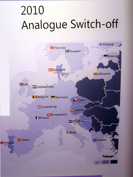 ユーロ各国における2010 年アナログ放送終了を解説したボード