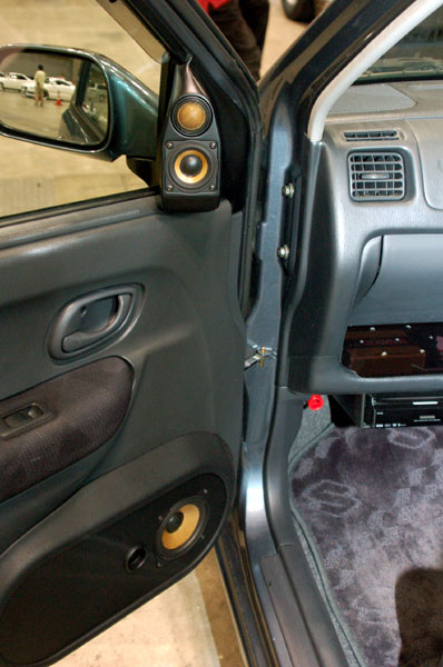 狭い車内にスピーカーなどがきっちりと設置されている