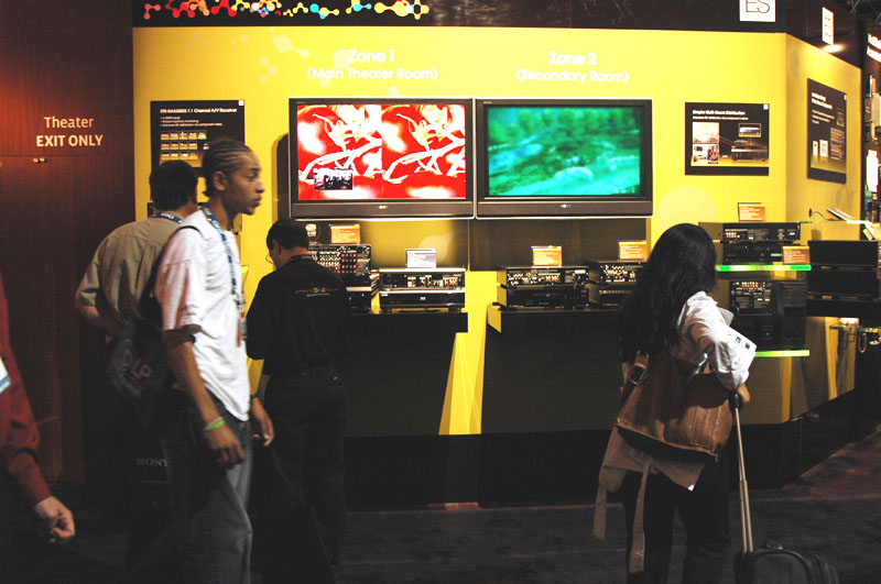 ソニーのAVアンプからHDMIを用いて2ゾーンに映像を送るというデモを行っている