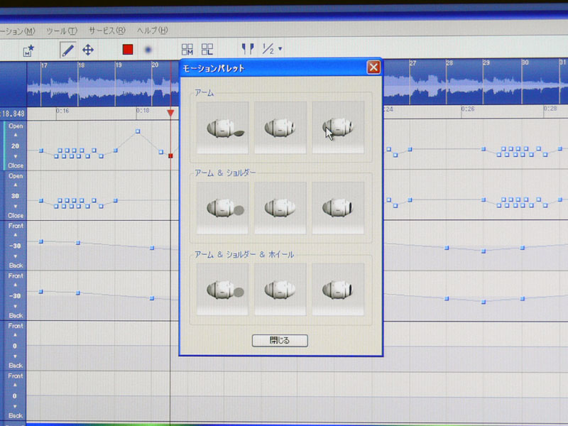 あらかじめモーションやサイドランプの色のパターンが数種類用意されている