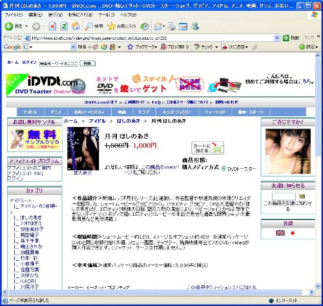 【一条真人の体当たり実験室】「月刊 ほしのあき」を75%OFFでゲット! − DVDのDLサイト「iDVDt.com」を使ってみた