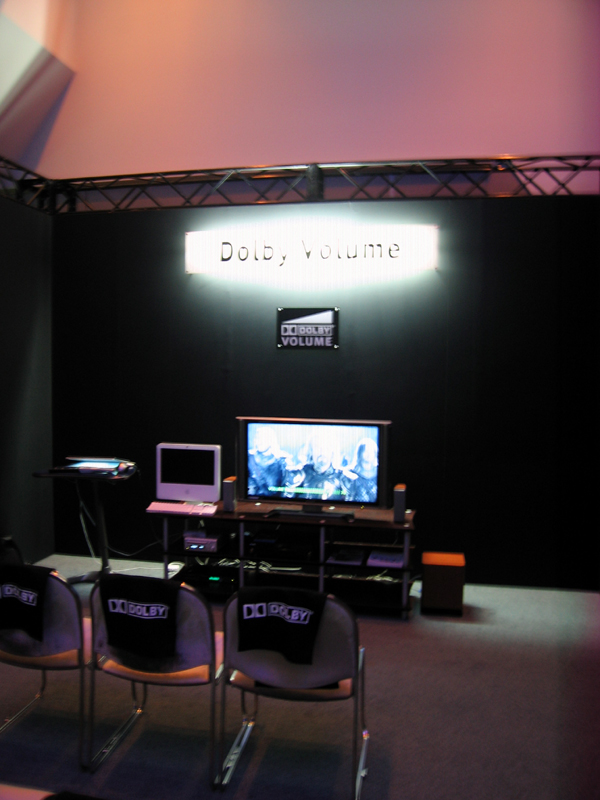 国際会議場の「ドルビーボリューム」のデモルーム。デモはホール2でも聴ける