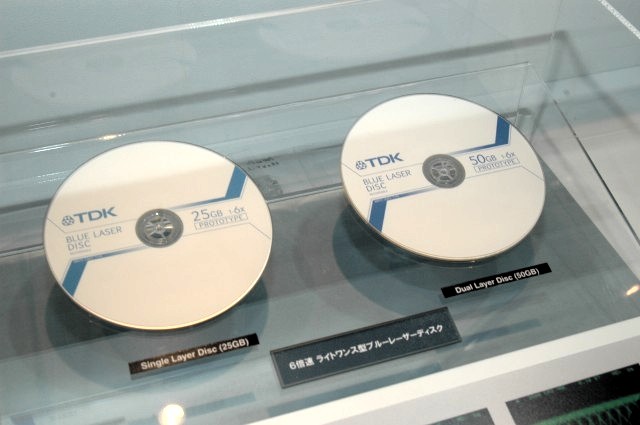 TDKが展示した6倍速記録対応のBD-R(1層・2層)のサンプル