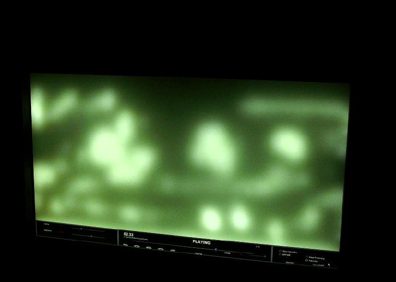 この映像は実際の映像に対するバックライトの動作を表したデモ。映像の明るさに応じてバックライトの輝度を局所的に調整する