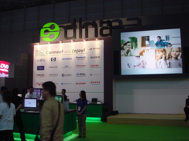 ブースではDLNAに加入するメーカー各社の製品を一同に展示。