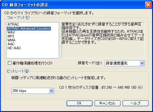 ATRAC Advanced Losslessはウォークマンに転送する部分(非可逆圧縮部分)のビットレートも細かく選択できる