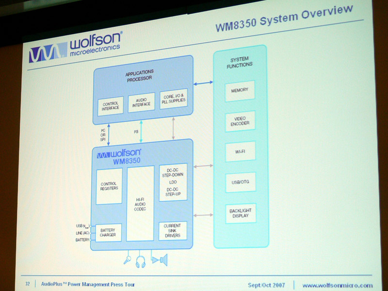 HOME > ニュース > AV&ホームシアターニュース ウォルフソン、高音質と電源管理機能を実現したシステムPMIC「WM8350」を発表 2007年10月15日 前の写真へ 次の写真へ WM8350のシステム概要 前の写真へ 次の写真へ この写真の記事へ 関連リンク ウォルフソン・マイクロエレクトロニクス・ピーエルシー