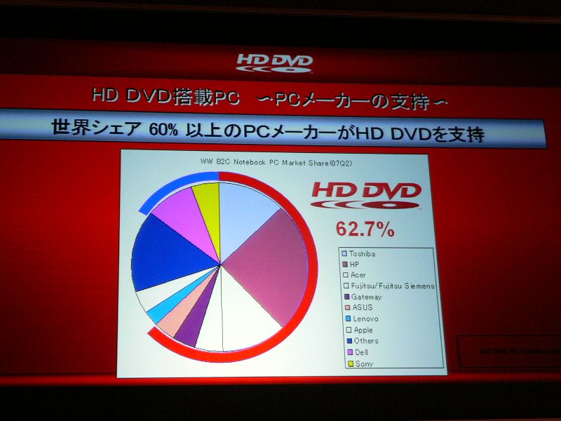 世界シェアで6割以上のPCメーカーがHD DVDを支持している、と主張