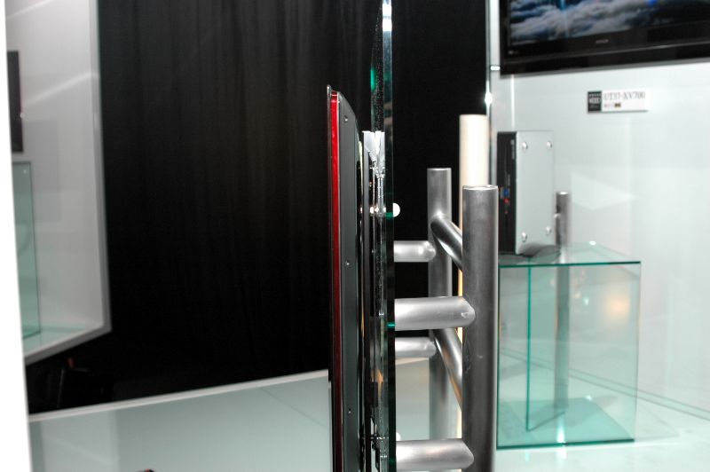 ガラスに壁掛け設置したところ。ほとんど壁に密着しているように見える