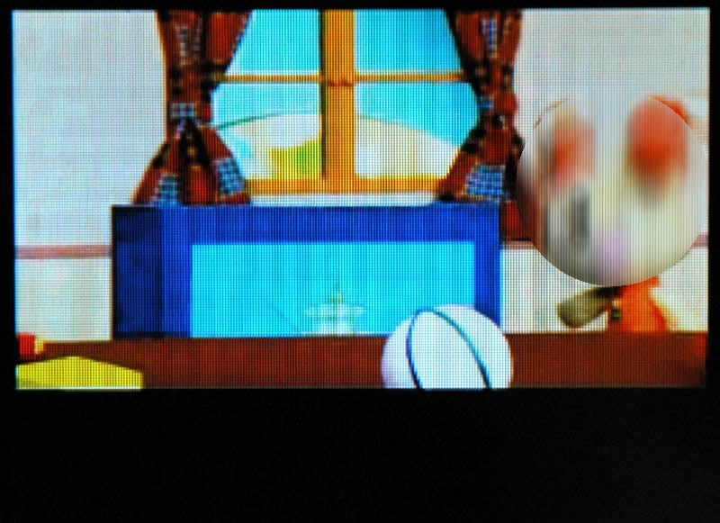 16対9の映像を「標準モード」で表示したところ。下画面に黒オビが出る