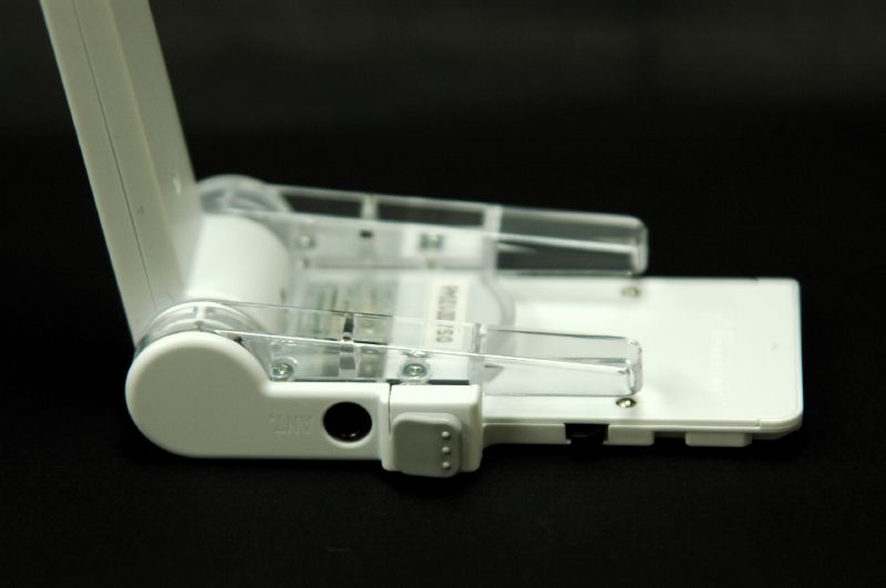 チューナー部をアップにしたところ。黒い丸の部分に延長アンテナケーブルを挿入する。手前のグレーのスイッチを押さないとDS本体から外れず、安全性にも配慮している