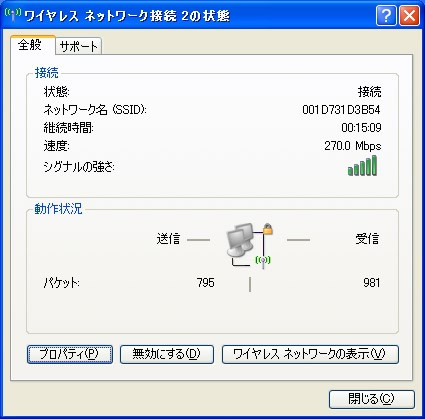 サーバークライアント間は270Mbpsあるいは300Mbpsでリンクしている