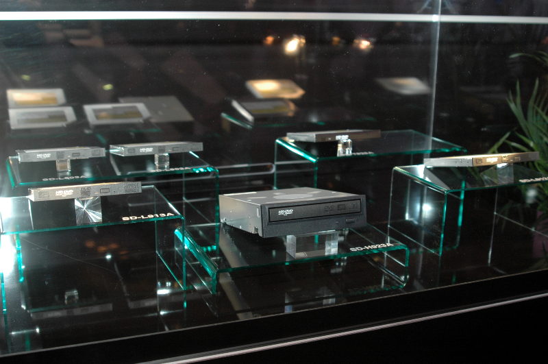 PC用のHD DVDドライブ。前面の3機種がHD DVD-R/RW対応モデル