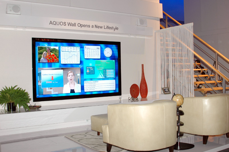 <CES2008:シャープブース>“未来の液晶テレビ”がズラリ/テーマは“プレミアム感”&“和”の「SE94」
