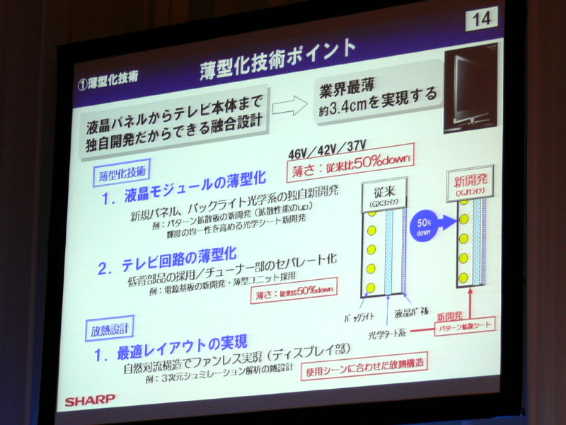 シャープ、最薄部3.44cmの超薄型AQUOS“Xシリーズ“ 3機種を発売