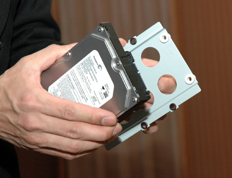 HDDは奥のケースに収納。その際、緩衝材で振動を吸収する