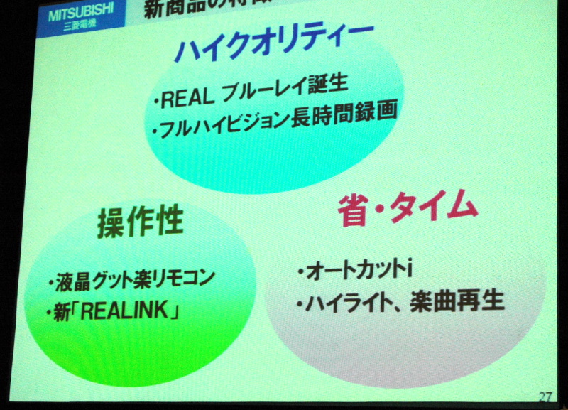 三菱電機、同社初のBDレコーダー“REALブルーレイ”2機種など発売
