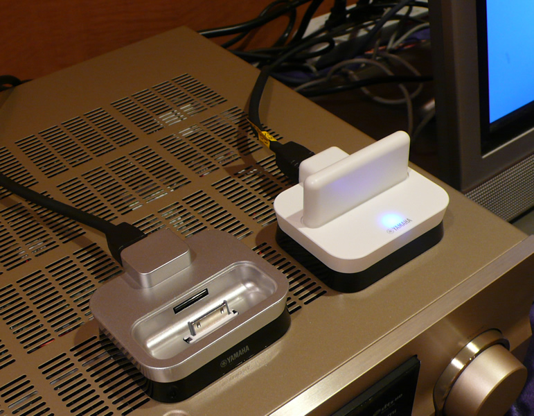 Bluetooth オーディオレシーバ ー「YBA-10」(右)、iPod用ユニバーサル・ドック「YDS-11」