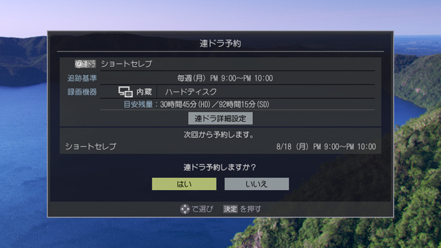 連ドラ録画予約のイメージ。連ドラ予約なども行える