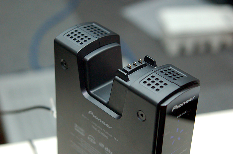 ヘッドホンスタンド部に充電機構を備え、載せるだけで充電が可能だ
