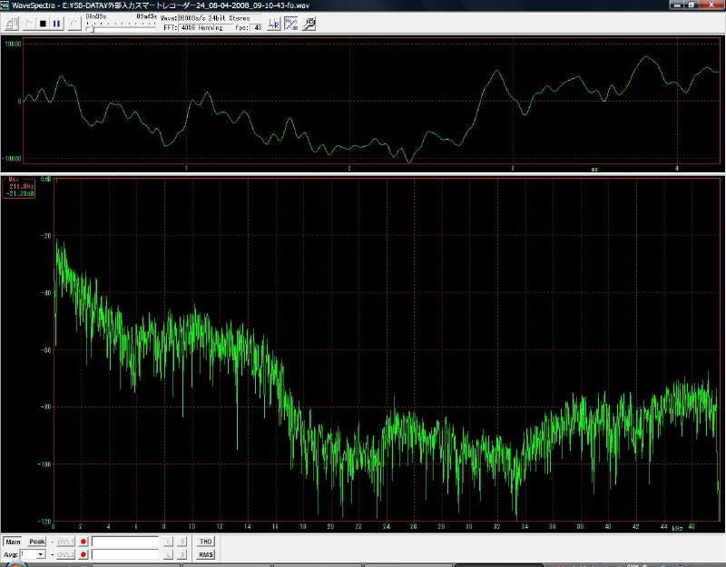 SBサウンドブラスターDigitalMusic SXで96kHz/24ビットステレオでサンプリングしたもの。48kHz(1チャンネル)まで情報があるのがわかる