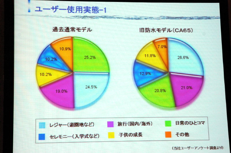 前モデルのユーザを対象に行った実態調査では、レジャー、旅行での使用が約5割を占めた