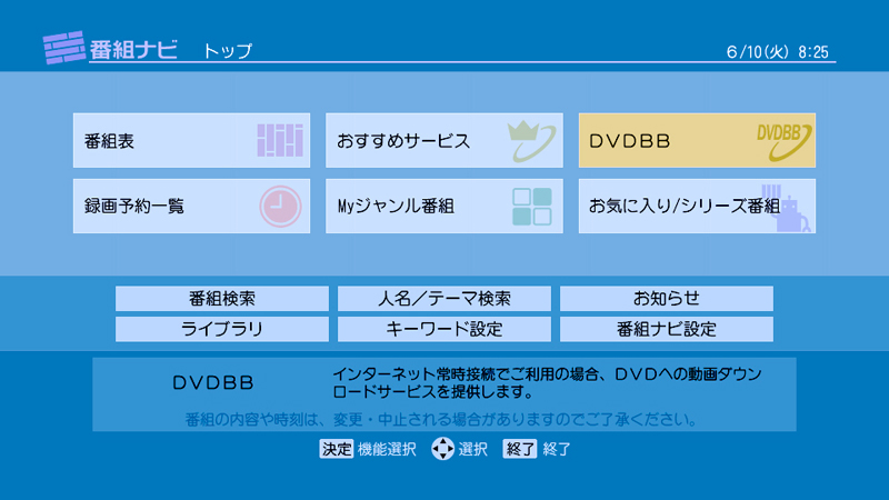 「番組ナビ」トップの「DVDBB」メニューを選択