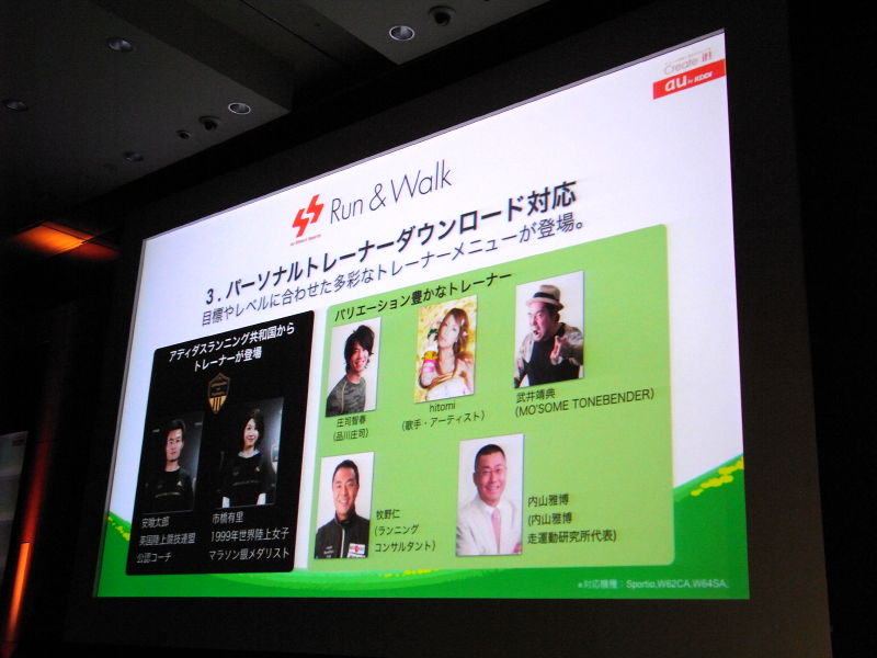 HOME > ニュース > AV&ホームシアターニュース ケータイで楽しめる高画質動画サービス「LISMO Video」がスタート − KDDI夏モデル発表会詳報 2008年06月03日 前の写真へ 次の写真へ トレーナーにはお笑い芸人の庄司さんや歌手のhitomiさんも登場 前の写真へ 次の写真へ この写真の記事へ 関連リンク 新モデルの紹介ページ LISMO Videoのニュースリリース