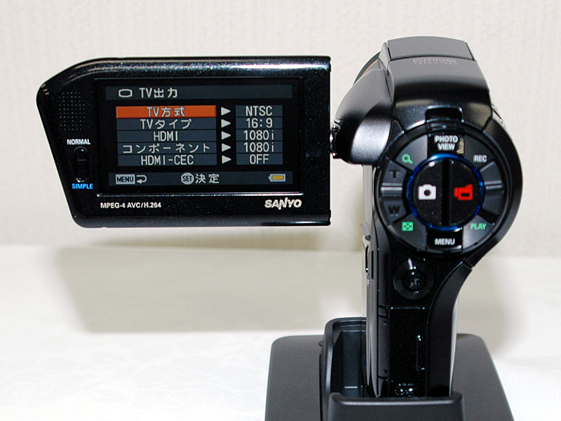 通常モードのメニュー画面。本機はHDMIのCEC機能にも対応し、テレビリモコンでXactiの再生操作ができる
