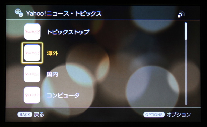 Yahoo!ニュースのなかから目的のジャンルを選択してニュースを表示させることができる。また、天気予報の表示も可能