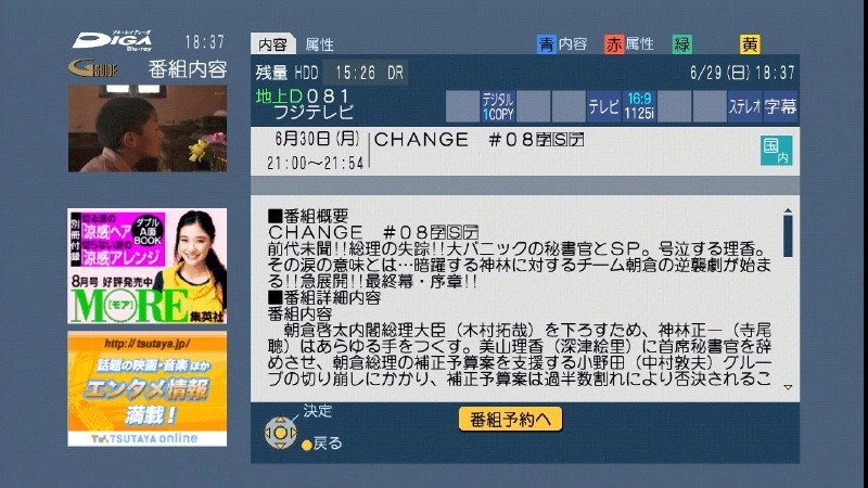 ダビング10開始前のEPG画面。「デジタル1COPY」という表記だった